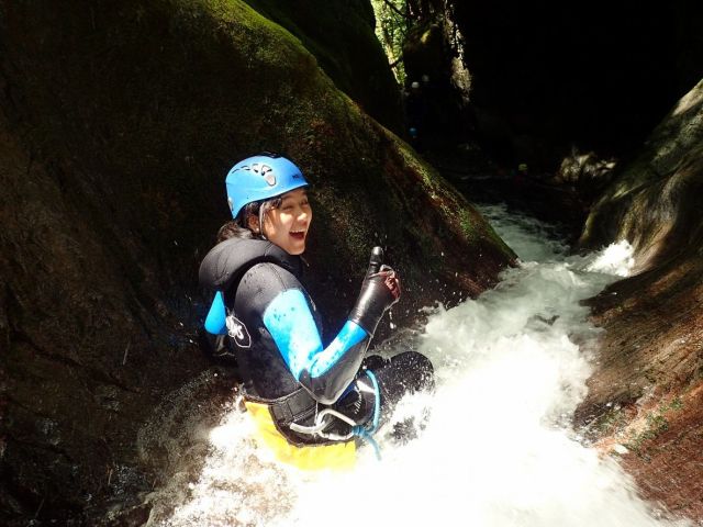 キャニオニングは、こちらの動画を見て頂くとわかりますが、急流を滑ったり、ロープを使って崖を上ったり、滑り降りたりとなかなかスリリングな川遊びを体験することができます。